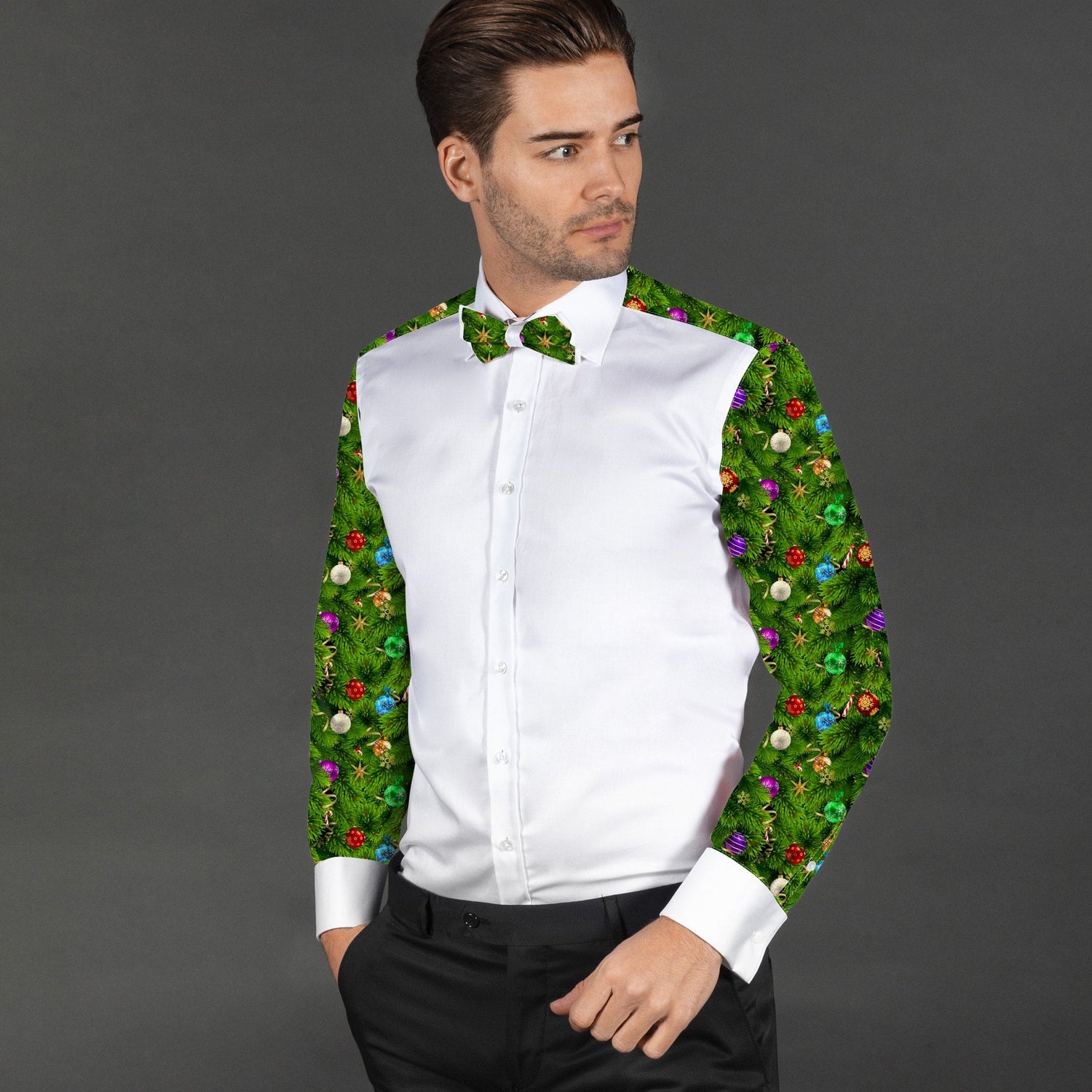 XMAS TREE PRINTED TUXEDO SHIRT WITH BOWTIE