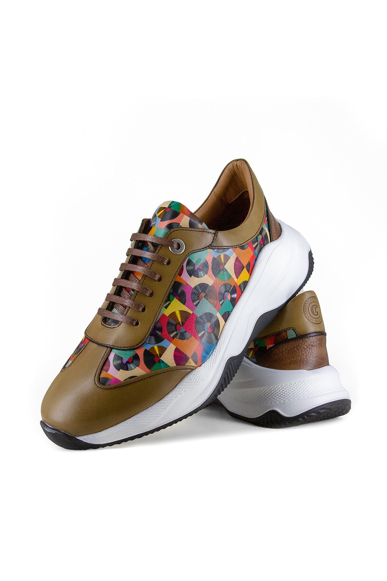VINTAGE VINYL DISC PRINTED LEATHER TRAINERS