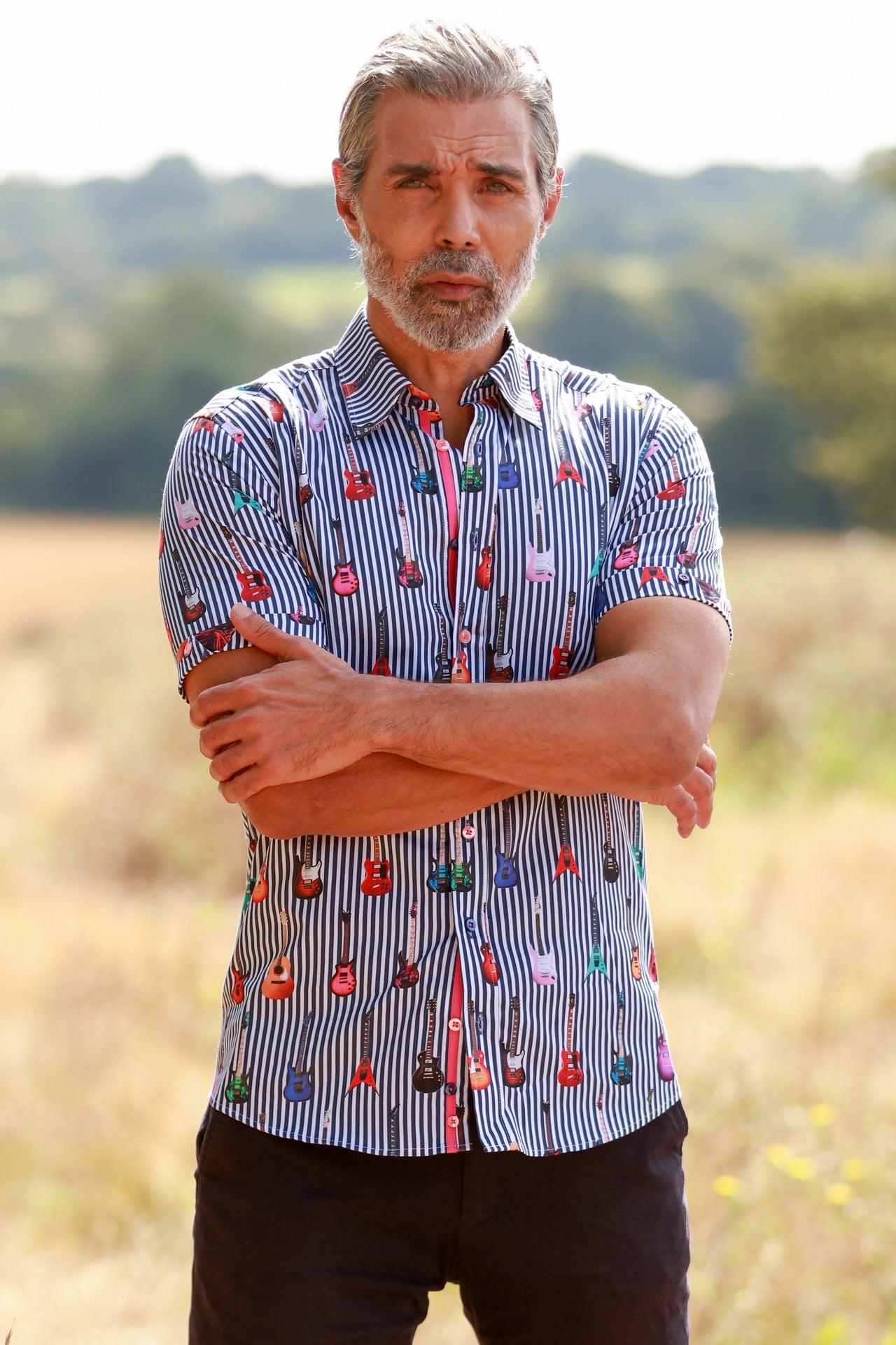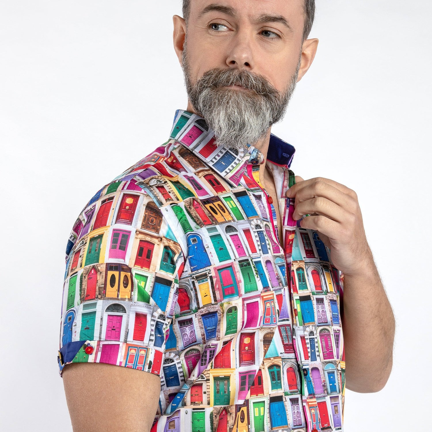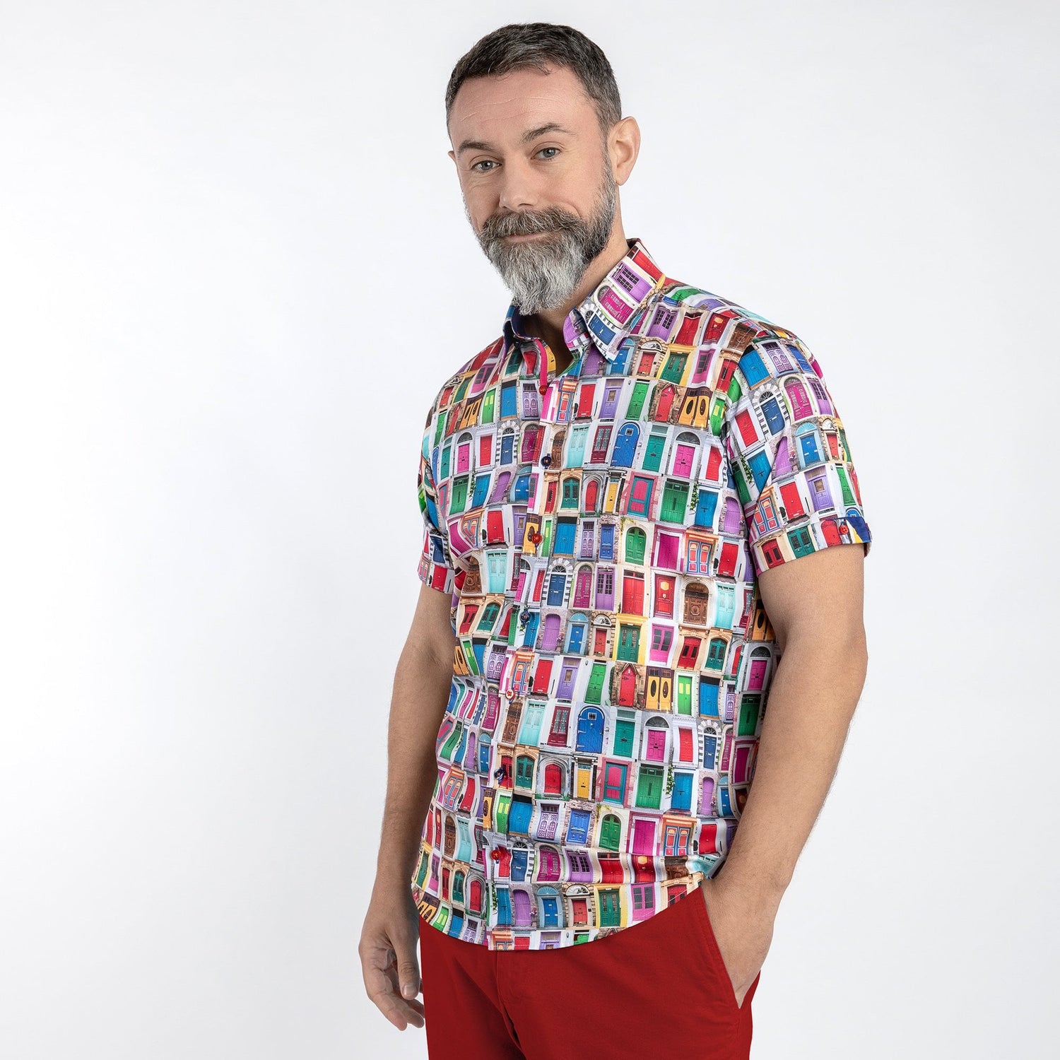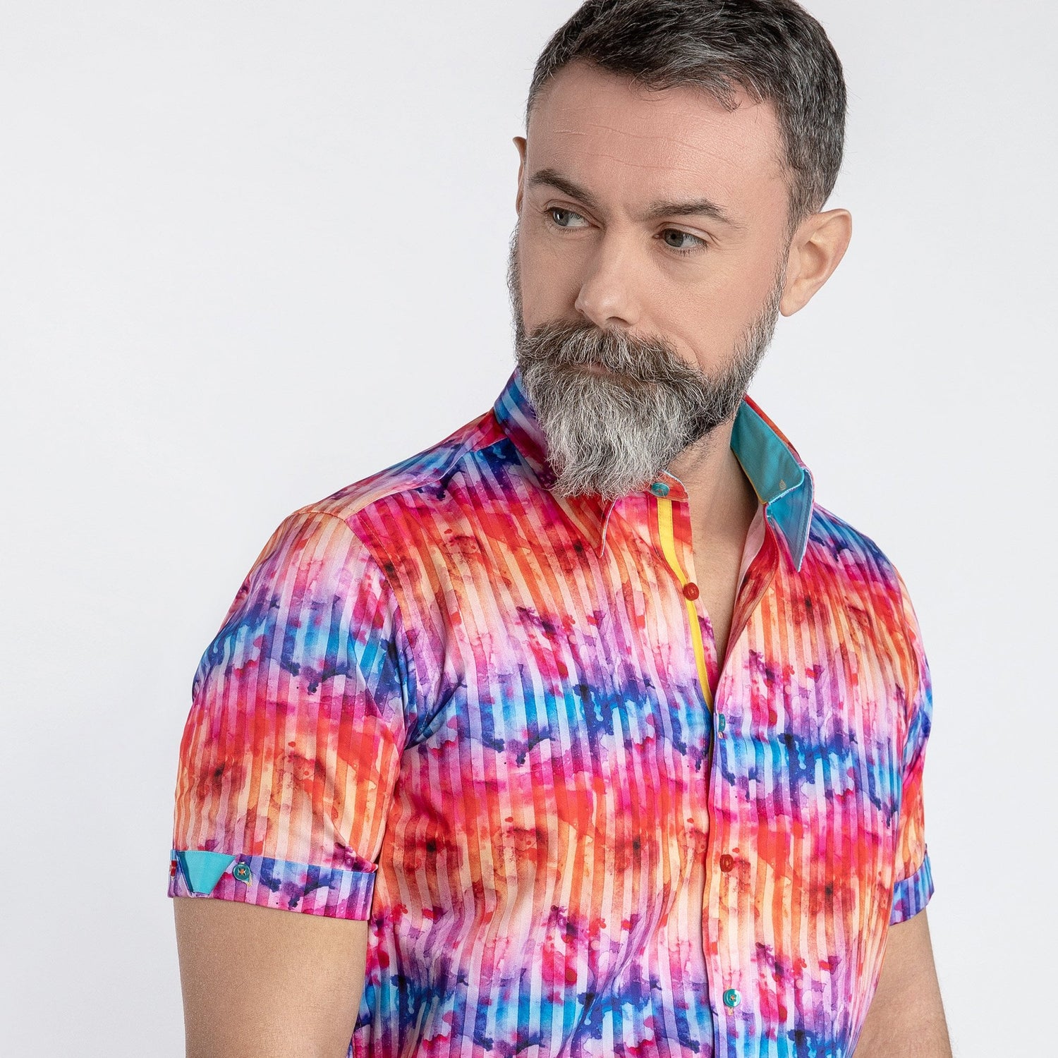 MULTICOLOUR SQUIGGLE LINEN MEN SHORT SLEEVE