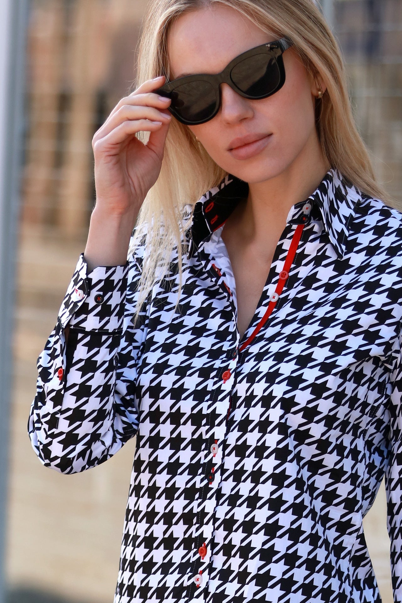 HOUNDSTOOTH AND MUSTANGS DOUBLE BREASTED PRINTED WOMENS JACKET