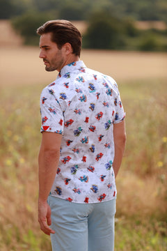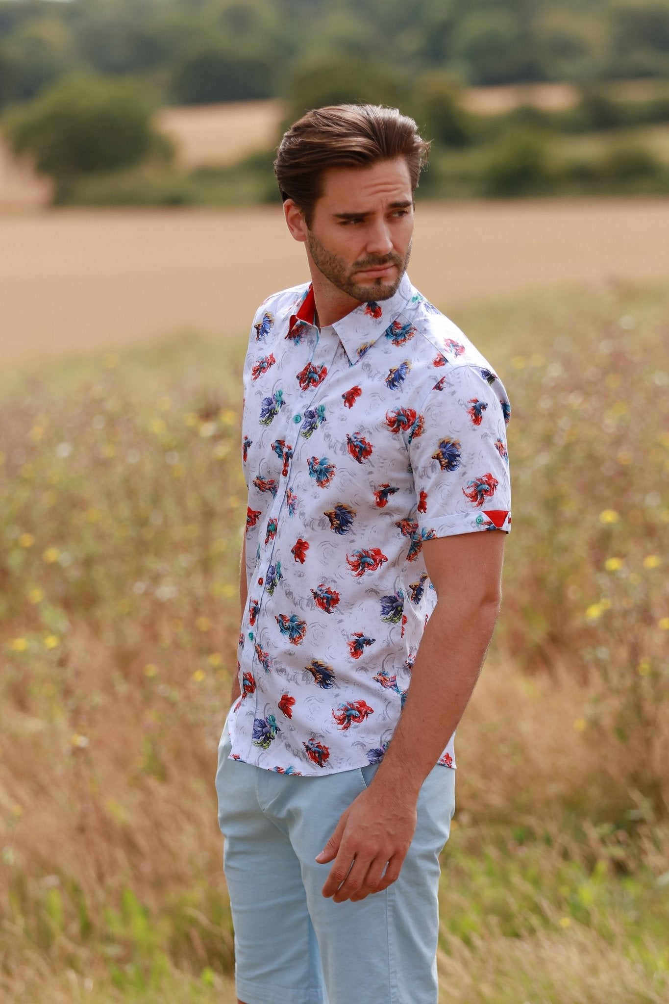 AQUATIC ALLURE. BETTA FISH PRINT SHORT SLEEVE SHIRT