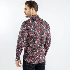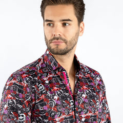 Unleash your inner rebel with the Skull Retro Roses Tattoo Print Shirt by Claudio Lugli. This striking piece blends edgy skulls with vibrant roses in a dynamic tattoo-inspired design, perfect for those who want to make a bold fashion statement. Made from premium satin cotton, the shirt offers both comfort and style. It features a concealed under-collar button, double collar buttons, and contrasting lining and piping on the placket, ensuring a sharp, tailored look. The adjustable cuffs add versatility to your style. Ideal for adding a touch of rock 'n' roll to any wardrobe, this shirt is a must-have for the modern fashion enthusiast.