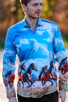 STALLION SUNRISE PLACEMENT PRINT - Premium Men's Patterned Shirt by Claudio Lugli | Bold Design, Tailored Fit, Best Printed Shirts