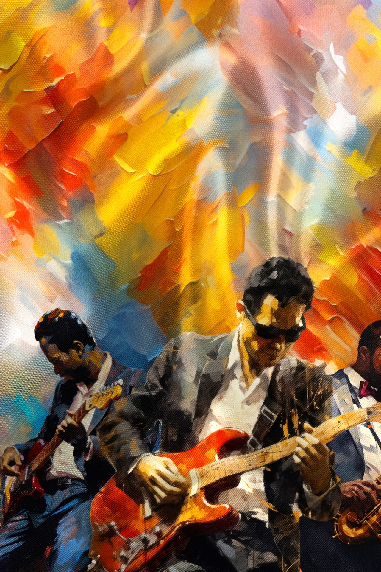 Step into the rhythm of style with The Soundwave Print Shirt, a wearable masterpiece that fuses art, music, and motion. This electrifying design captures the essence of a live performance, where a soulful jazz/rock/soul ensemble comes to life in an expressive oil-painted aesthetic.