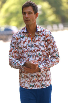 4/4CAROUSEL HORSES PRINT SHIRT - Premium Men's Patterned Shirt by Claudio Lugli | Bold Design, Tailored Fit, Best Printed Shirts