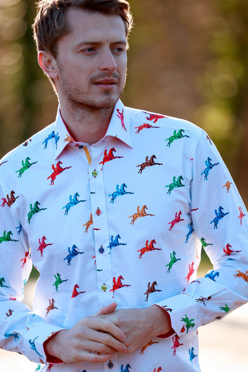 10/10 MULTI HORSE RIDER PRINT SHIRT - Premium Men's Patterned Shirt by Claudio Lugli | Bold Design, Tailored Fit, Best Printed Shirts