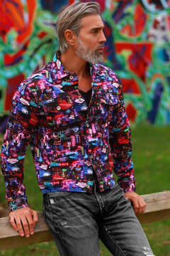 4/4 VEGAS AT NIGHT SHACKET - Premium Men's Patterned Shirt by Claudio Lugli | Bold Design, Tailored Fit, Best Printed Shirts