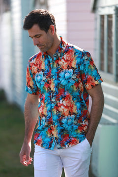 LIQUID FLORAL PRINT SHORT SLEEVE SHIRT