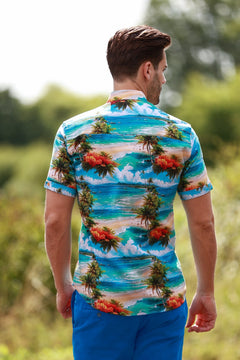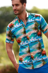 HAWAIIAN BEACH PRINT SHORT SLEEVE SHIRT