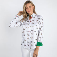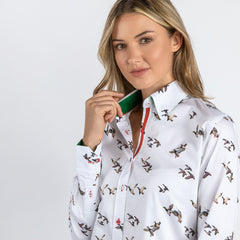Wade into the world of style with the Ducks Women's Print Shirt. Featuring a delightful pattern of ducks in flight, this shirt effortlessly blends whimsy with elegance. Crafted from a luxurious satin and cotton blend, it offers a smooth, comfortable fit that feels as good as it looks. Ideal for nature lovers or anyone looking to add a playful touch to their wardrobe, this shirt pairs beautifully with jeans for a casual day out or with white trousers for a chic, refined look. Whether you're out for a stroll or meeting friends, the Ducks Women's Print Shirt is sure to make a splash!