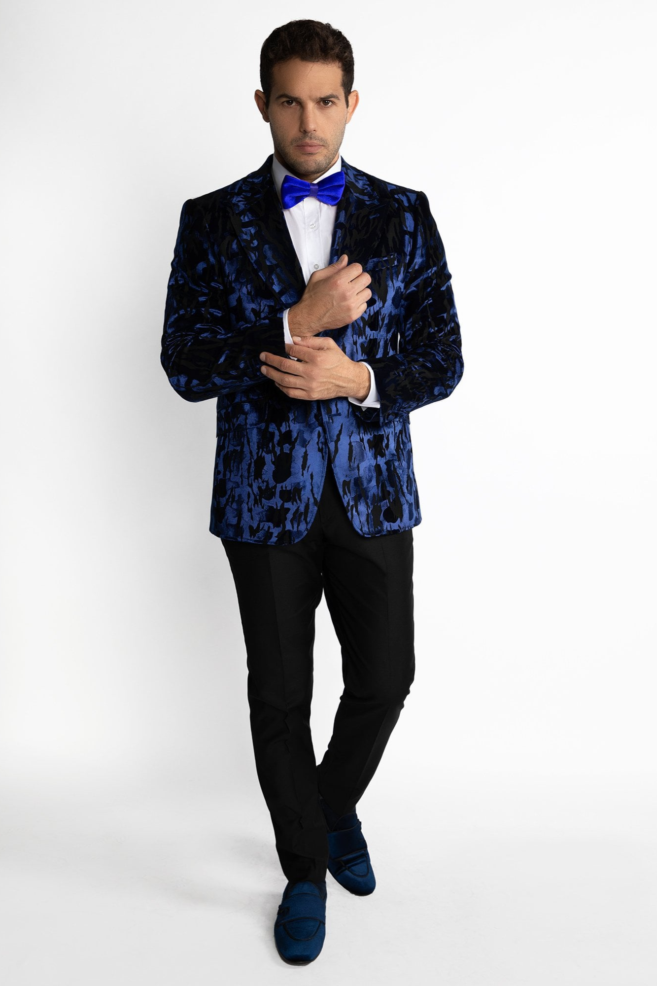Make a bold entrance with the Luxury Fitted Zebra Print Dinner Jacket, available in striking blue and black options. Crafted from a sophisticated blend of 65% polyester and 35% viscose, this jacket is tailored to enhance your silhouette. Customers often find it best to order one or two sizes up for the perfect fit—if you usually wear a 40UK/50EU, consider a 42UK/52EU or 44UK/54EU.