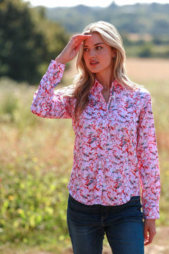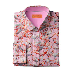 Perfect for sunny days or when you want to add a splash of color to your outfit, this shirt pairs beautifully with both jeans and tailored trousers. Whether you're heading to a garden party or a casual day out, the "Flamboyance of Flamingos" shirt adds a touch of whimsy and charm to any ensemble, ensuring you stand out in style.