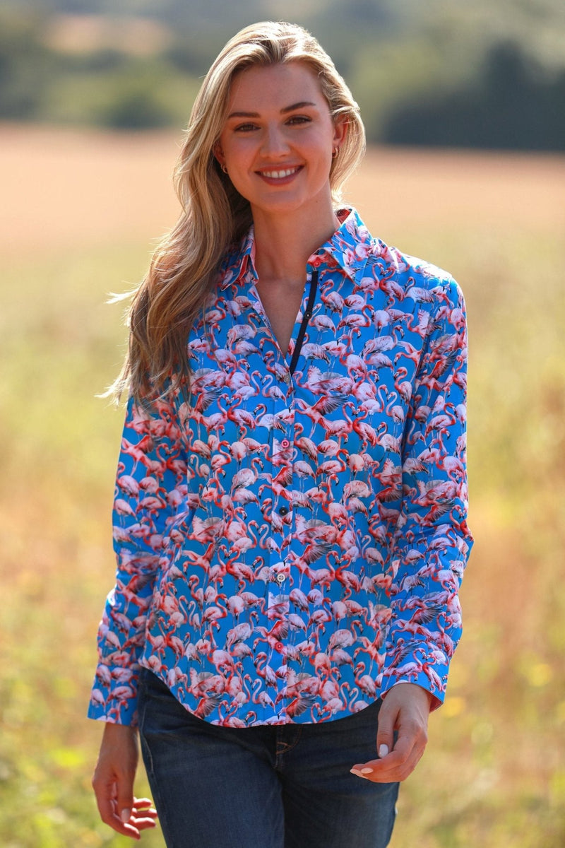 FLAMBOYANCE OF FLAMINGOS WOMENS PRINT SHIRT