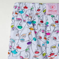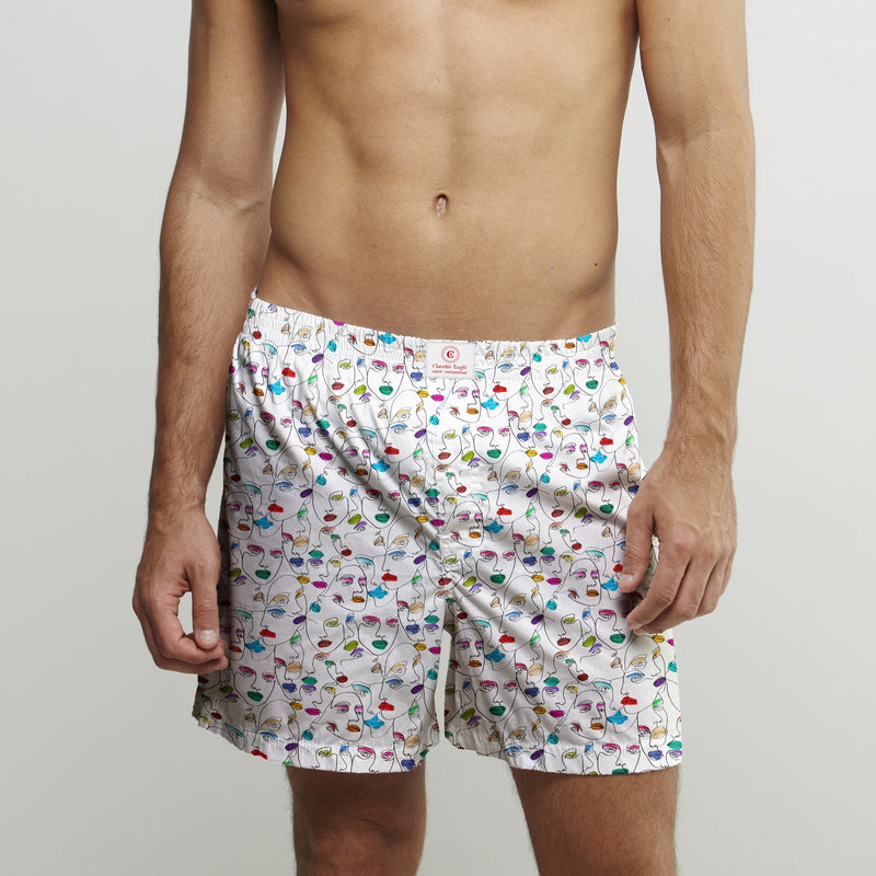 Add a touch of artistic flair to your wardrobe with these cotton poplin boxer shorts, featuring an abstract face print. The unique design showcases vibrant colours and intricate line art, bringing a creative and modern edge to your everyday essentials. Crafted from soft and breathable cotton poplin, these boxers ensure maximum comfort and a relaxed fit with an elasticated waistband. Ideal for those who appreciate both style and comfort, these boxers are perfect for making a subtle yet bold statement.