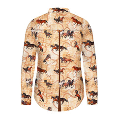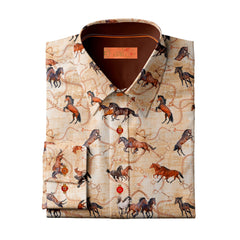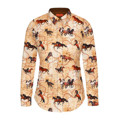 Whether you're heading to a countryside event or simply want to bring a touch of the outdoors into your everyday wardrobe, this shirt pairs beautifully with denim or neutral trousers. The rich tones and detailed design make it a statement piece, ideal for layering under a blazer for a chic, polished look. Perfect for horse lovers or those with an eye for unique fashion, this shirt ensures you'll always be leading the style race.