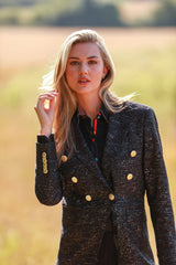 - Opulent gold buttons for a touch of glamour