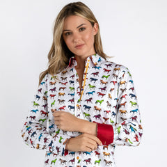 MULTI COLOURED GALLOPING HORSES WOMENS PRINT SHIRT