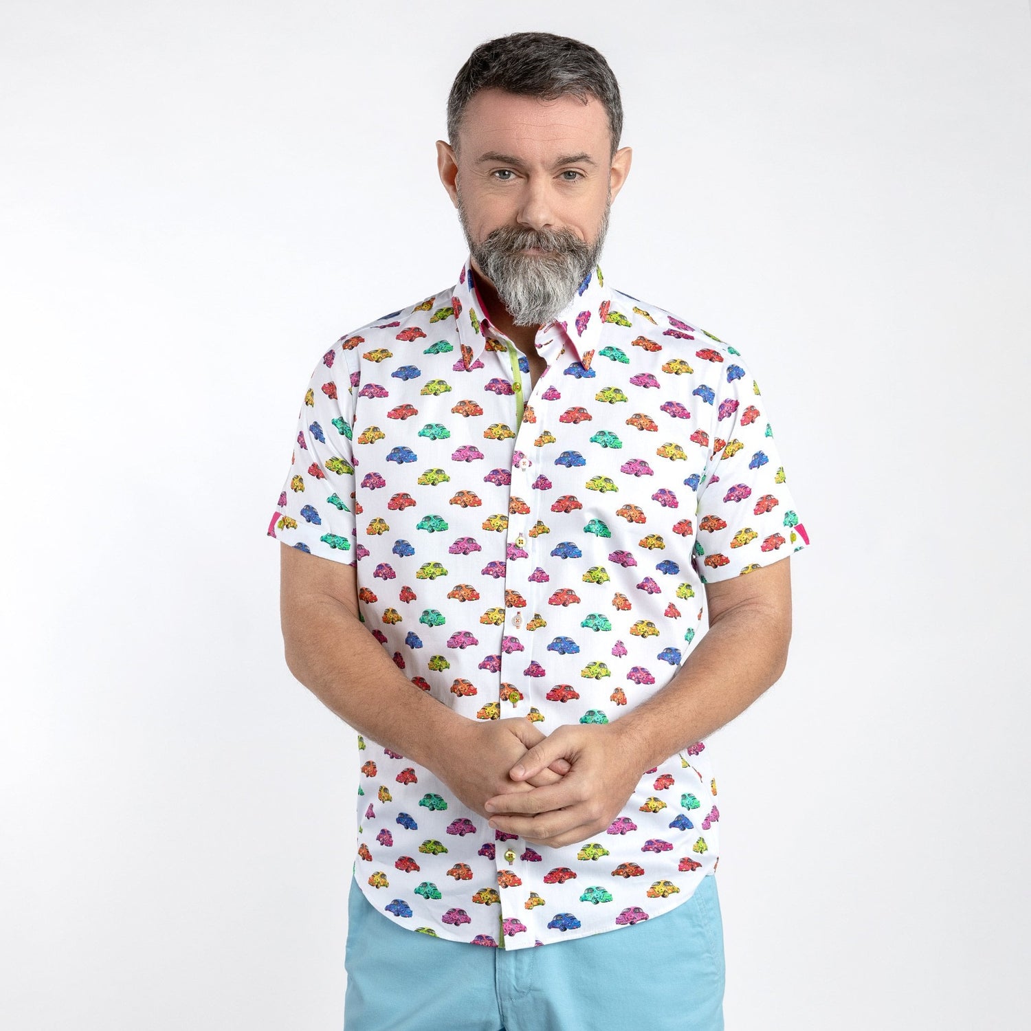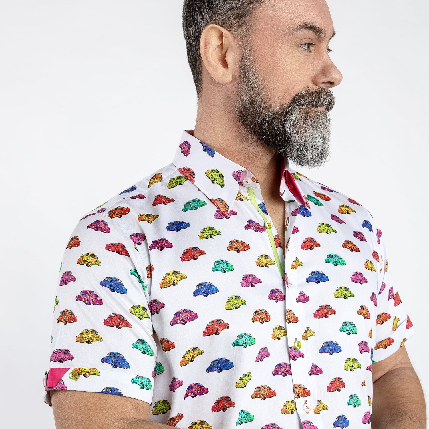 Unleash your vibrant personality with a playful twist in the short sleeve shirt featuring a multicoloured beetle print. Perfect for those who aren't afraid to stand out, this shirt blends whimsy with classic design, offering a unique addition to your wardrobe. Crafted from lightweight fabric, it's designed to keep you cool and comfortable while turning heads. The bold, colourful beetle motifs add a fun, retro vibe that's perfect for summer outings, festivals, or casual weekends. Pair it with your favourite shorts or trousers to showcase a look that's as unique as you are. Make every day an adventure with a shirt that’s anything but ordinary.