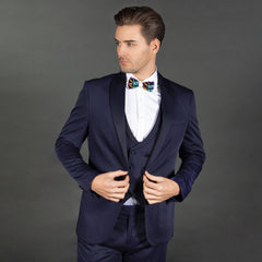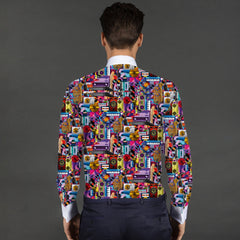 The Musical Instrument Printed Tuxedo Shirt with Bowtie is a symphony of style for the musically inclined gentleman. The crisp white front provides a classic and refined look, but it's the sleeves and bowtie where this shirt truly sings. Adorned with a vibrant array of musical instruments, including guitars, pianos, and trumpets, the print brings a dynamic rhythm to your ensemble. Perfect for anyone with a passion for music, this shirt doesn’t just make a statement—it plays a tune. The musical motif continues on the back, ensuring that your style remains harmonious even when the jacket comes off, making every angle as striking as the front.