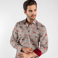 MUSTANGS ON PUPPYTOOTH BACKGROUND PRINT SHIRT - Premium Men's Patterned Shirt by Claudio Lugli | Bold Design, Tailored Fit, Best Printed Shirts