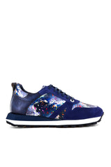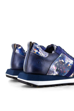 Add a burst of creativity to your sneaker collection with these Paint Splash Printed Leather and Suede Trainers. Featuring a striking multicoloured paint splatter pattern on premium leather, these trainers are designed for those who love to make a bold statement. The vibrant design is beautifully contrasted by deep navy suede accents, offering a perfect balance of artful flair and timeless sophistication.