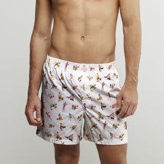The 100% cotton poplin boxer shorts showcase a vibrant and nostalgic pin-up design, featuring classic pin-up models in playful poses. The crisp white background highlights the colourful and detailed artwork, creating a striking visual contrast. The lightweight and breathable cotton poplin fabric ensures all-day comfort and durability, making them perfect for both lounging and everyday wear. An elastic waistband provides a secure fit, adding practicality to the stylish design. These shorts are a fun and unique addition to any wardrobe, blending retro charm with modern comfort.