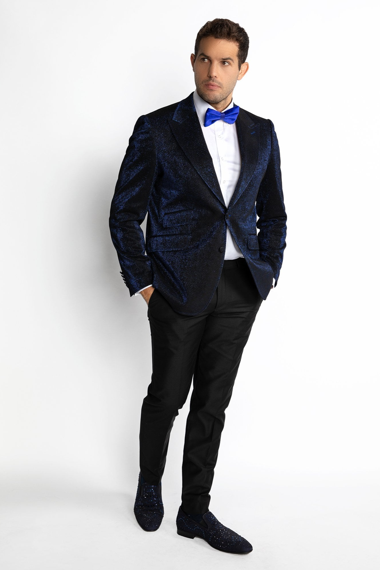 The sequined pattern in a black adds a touch of daring sophistication, perfect for formal events or upscale gatherings. Pair it with a crisp white shirt and a sleek bow tie for a look that exudes confidence and style. Embrace the allure of this unique design and make a lasting impression. Elevate your evening wear and step out with elegance!