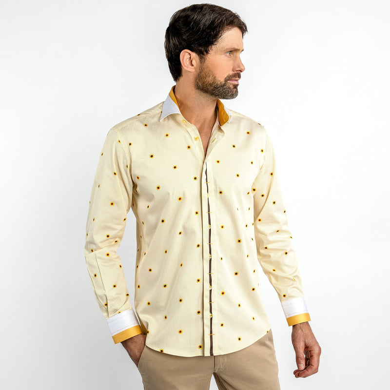 SUNFLOWERS AND ZIGZAG STRIPE PRINT SHIRT – Premium Men's Patterned Shirt by Claudio Lugli | Bold Design, Tailored Fit, Best Printed Shirts