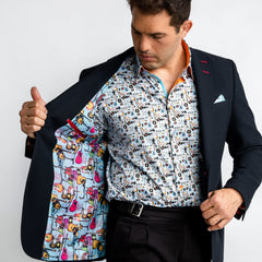 Introducing the SUPER LIGHTWEIGHT SIRSACA BLAZER by Claudio Lugli—a sartorial masterpiece that combines elegance with a dash of whimsy. Crafted from a luxurious blend of 64% polyester, 34% viscose, and 2% lycra, this blazer promises comfort and style in equal measure. Priced at £250.00, it’s an investment in timeless fashion.