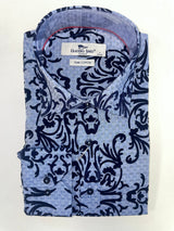 TEXTURED FLORAL FLOCKING PRINT SHIRT WITH LUXURY VELVET STYLE FINISH