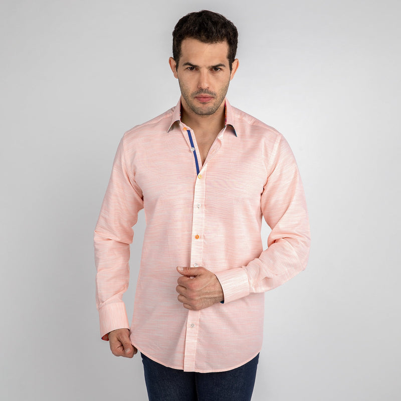 Embrace the essence of simplicity with the Claudio Lugli Textured Wash Classic Shirt. Crafted from a luxurious blend of satin and cotton, this shirt offers both comfort and understated elegance. Its plain print design, complemented by subtle blue inserting on the placket and multicolored buttons, adds a touch of refined detail. The long-sleeved shirt is available in a variety of colors including blue, pink, navy, green, and orange, making it a versatile addition to any wardrobe. Perfect for any occasion, this shirt effortlessly combines character, style, and timeless sophistication.