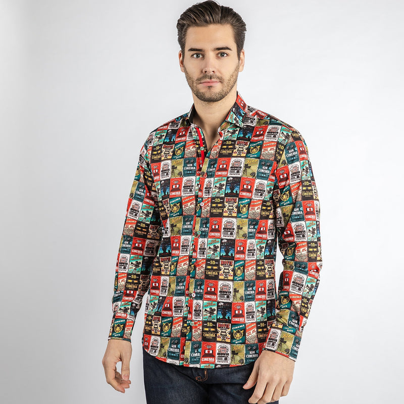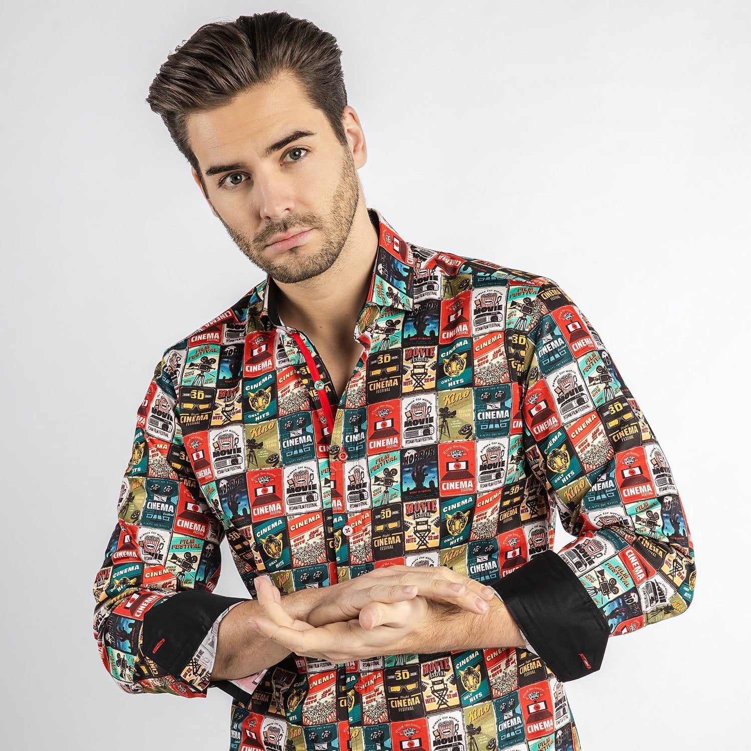 VINTAGE CINEMA AND MOVIE POSTER PRINT SHIRT - Premium Men's Patterned Shirt by Claudio Lugli | Bold Design, Tailored Fit, Best Printed Shirts