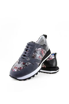 Unleash your inner rebel with these Vintage Motorbike Printed Leather and Suede Trainers, where retro cool meets modern comfort. Featuring an eye-catching motorbike print that channels the thrill of the open road, these trainers are crafted from a premium blend of supple leather and rich suede. The contrast between the printed panels and the solid suede overlays adds depth and texture, ensuring these shoes make a bold statement with every step.