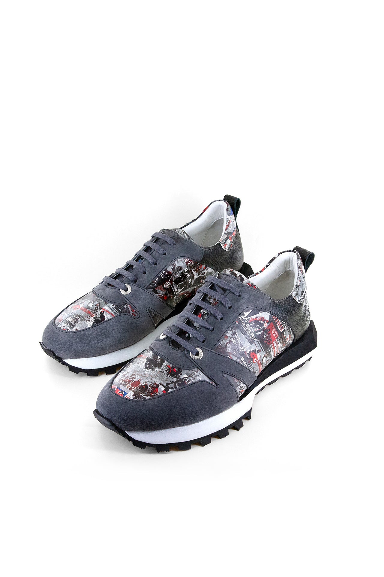 VINTAGE MOTORBIKE PRINTED LEATHER AND SUEDE TRAINERS