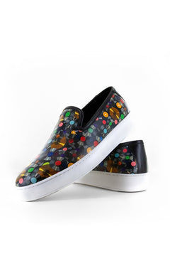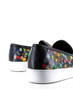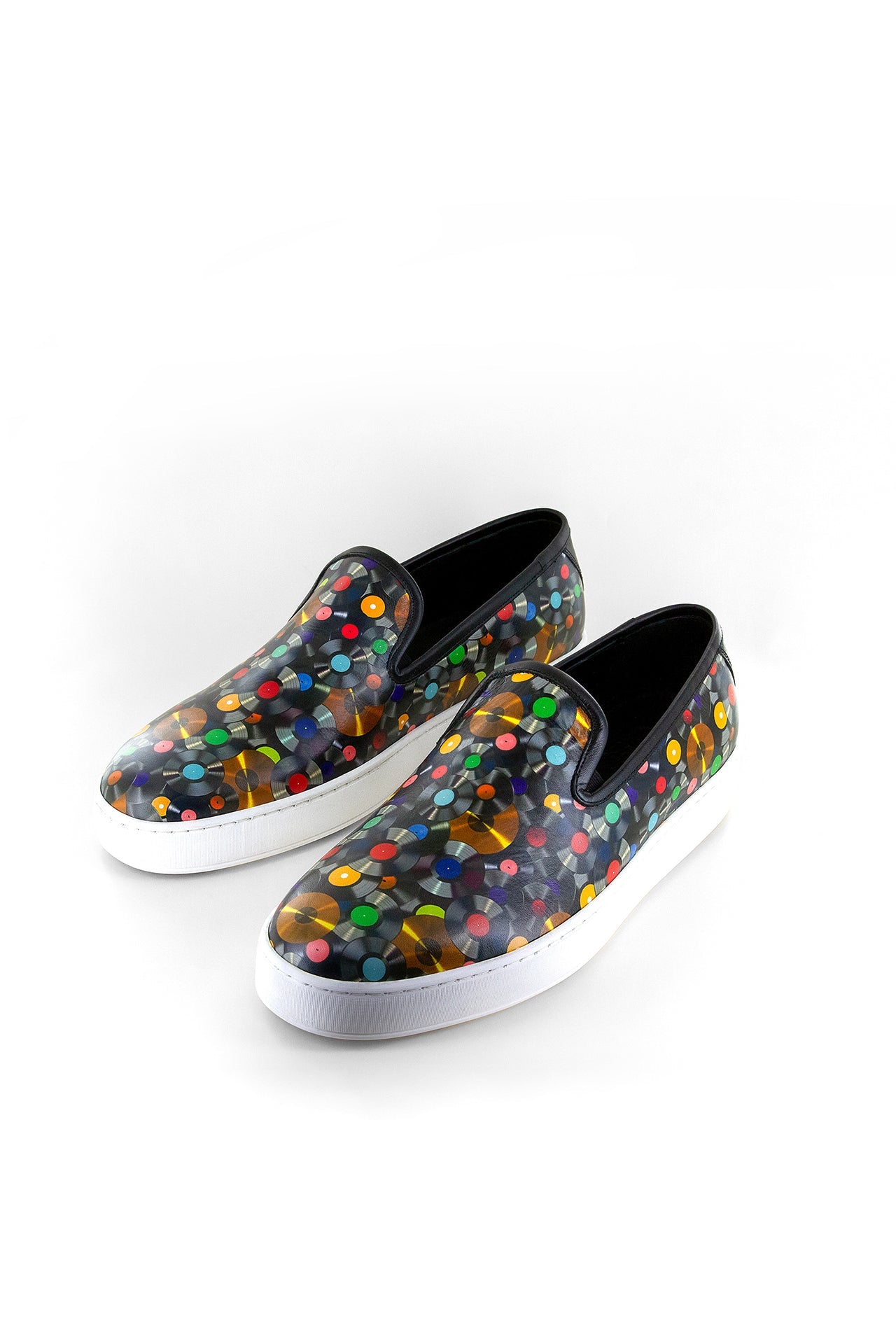 VINYL DISC PRINTED SLIP ON LEATHER SNEAKERS