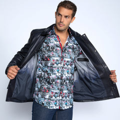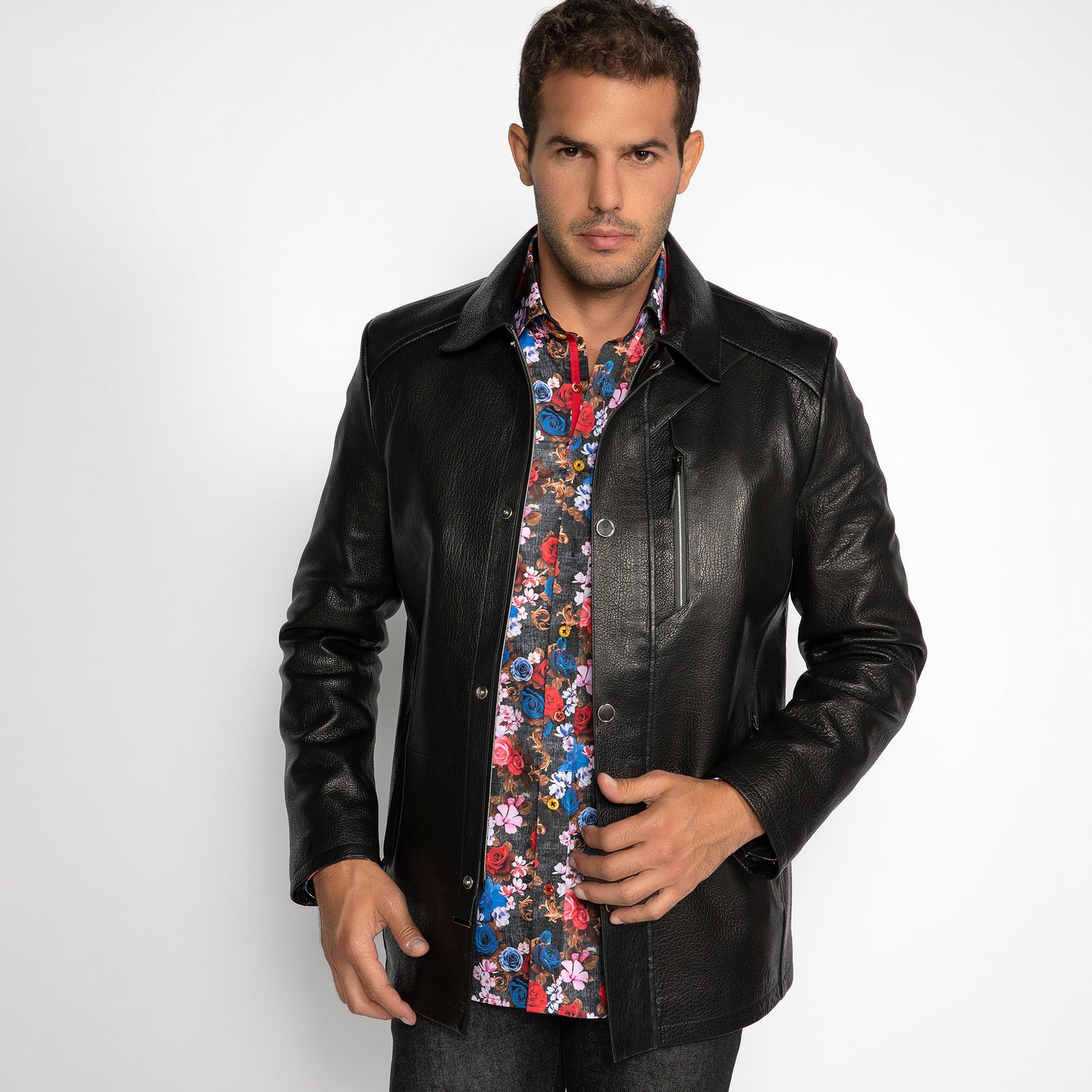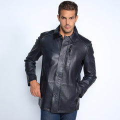 Command attention with the Commander Leather Field Jacket, available in bold black or sophisticated navy. This structured 100% leather jacket blends classic design with modern elegance, featuring a sharp collar and sleek zip details. Its refined silhouette brings a rugged touch of confidence to any look, while the polished finish provides an air of sophistication. Whether you’re exploring the city streets or need a sophisticated edge for an evening out, the Commander’s classic yet contemporary vibe is here to serve. Effortlessly stylish, it's the ultimate power play for the modern gentleman. Choose your color and take charge in style.