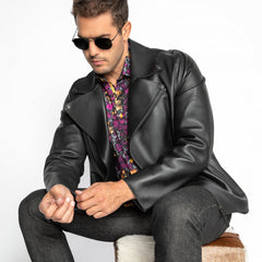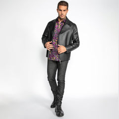 The Maverick Leather Moto Jacket - Premium Men's Patterned Shirt by Claudio Lugli | Bold Design, Tailored Fit, Best Printed Shirts